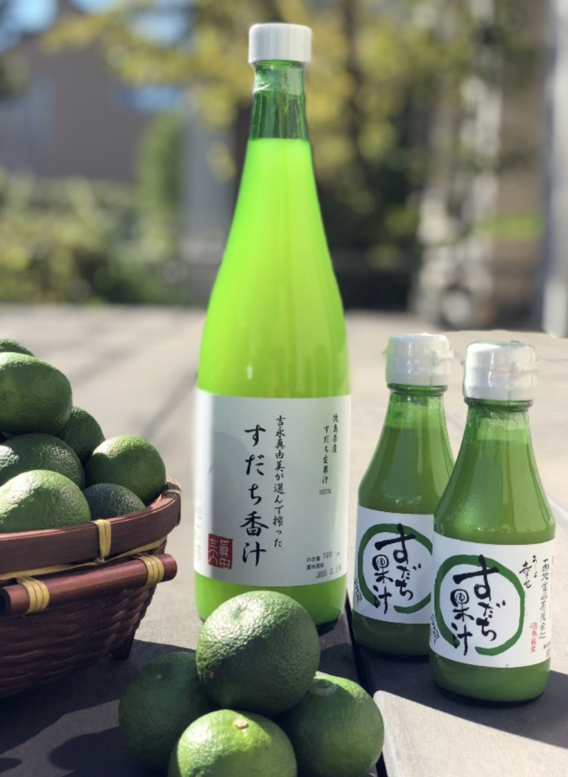 特に一番搾りのすだち果汁は、すだちの季節の中で一番酸味と香りのある9月上旬のすだちを搾汁したもので、人気の商品となっております。